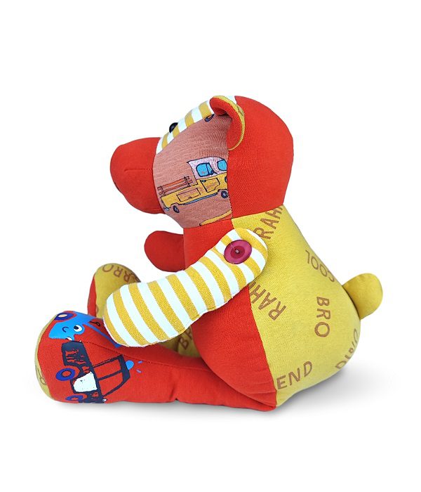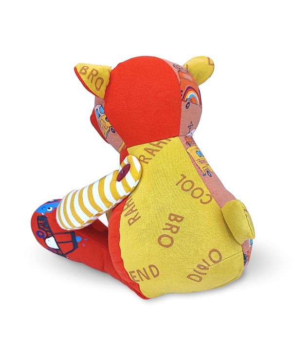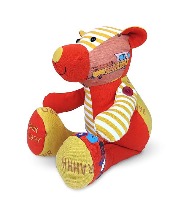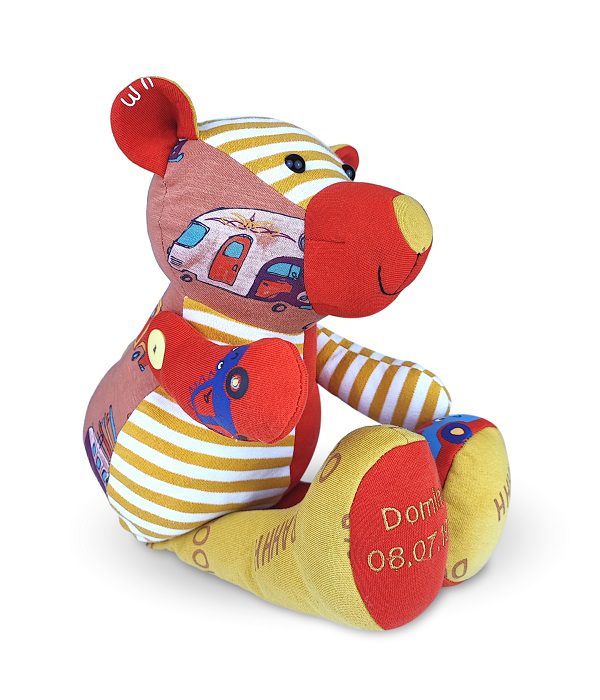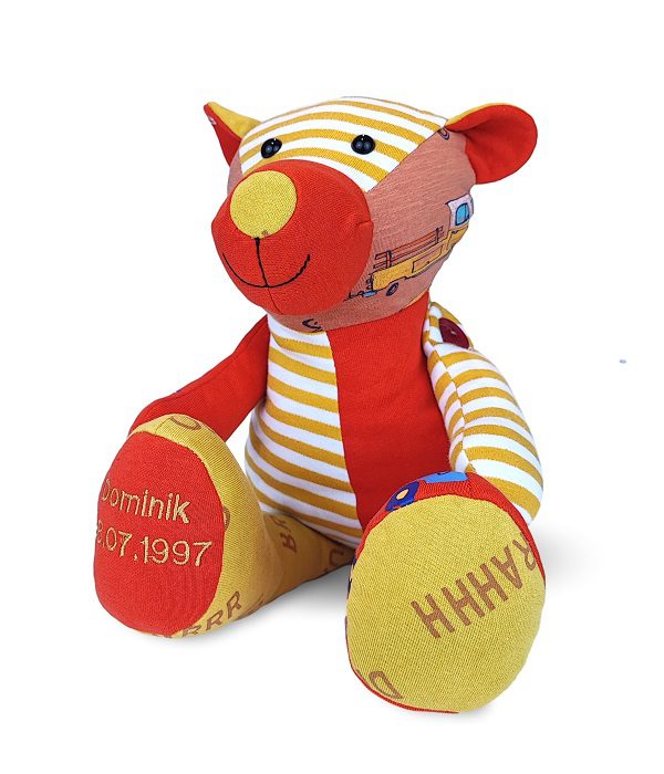 Twoje dziecko wyrosło z ubranek, a Ty nie potrafisz się z nimi rozstać? Ten jakże uroczy miś z wiszącymi nóżkami, uszyty w całości z ubranek Twojego dziecka, z pewnością stanie się najlepszym przyjacielem oraz pamiątką na zawsze.